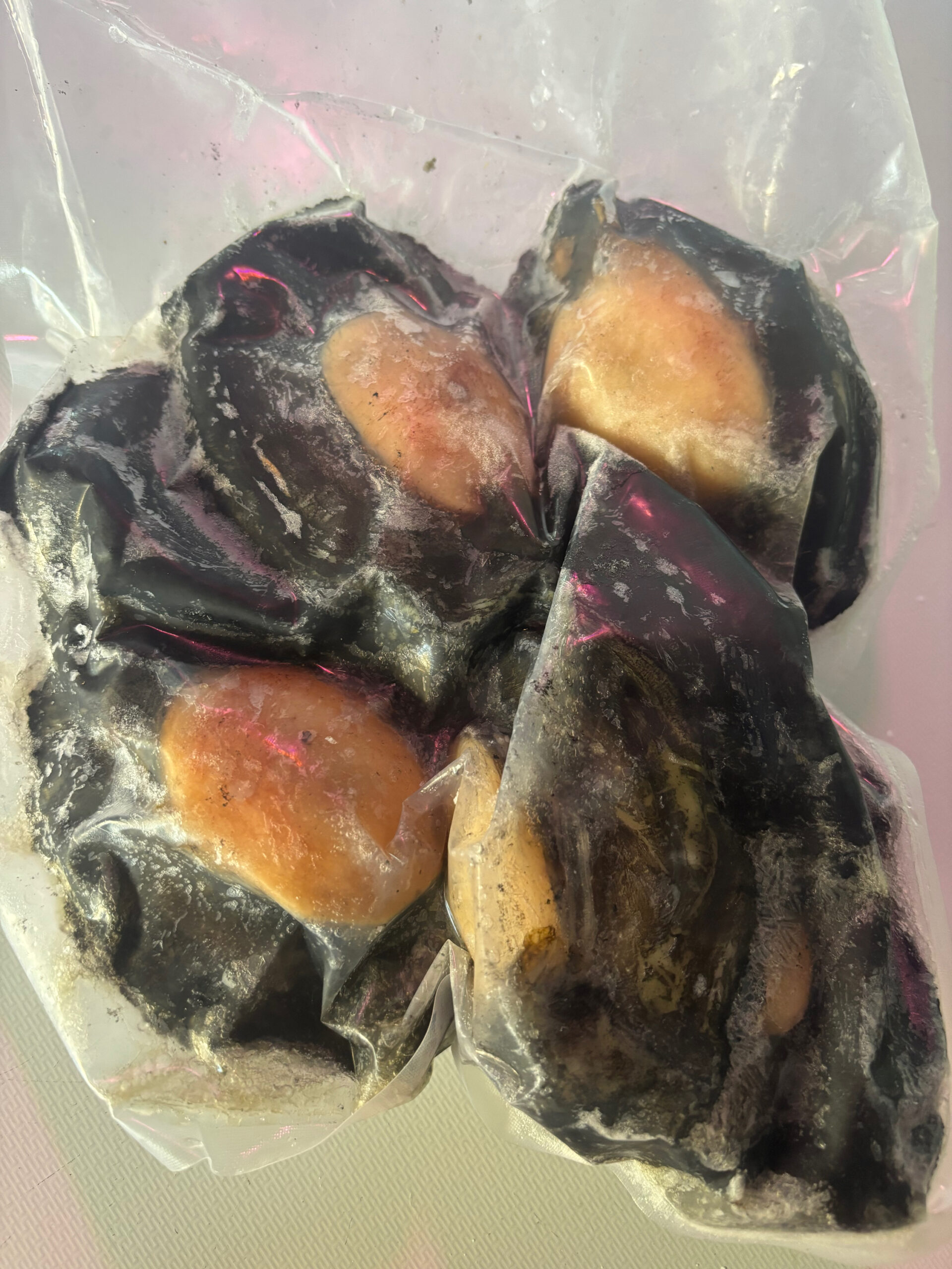 Vacuum packed whole shucked and cleaned pāua. Frozen